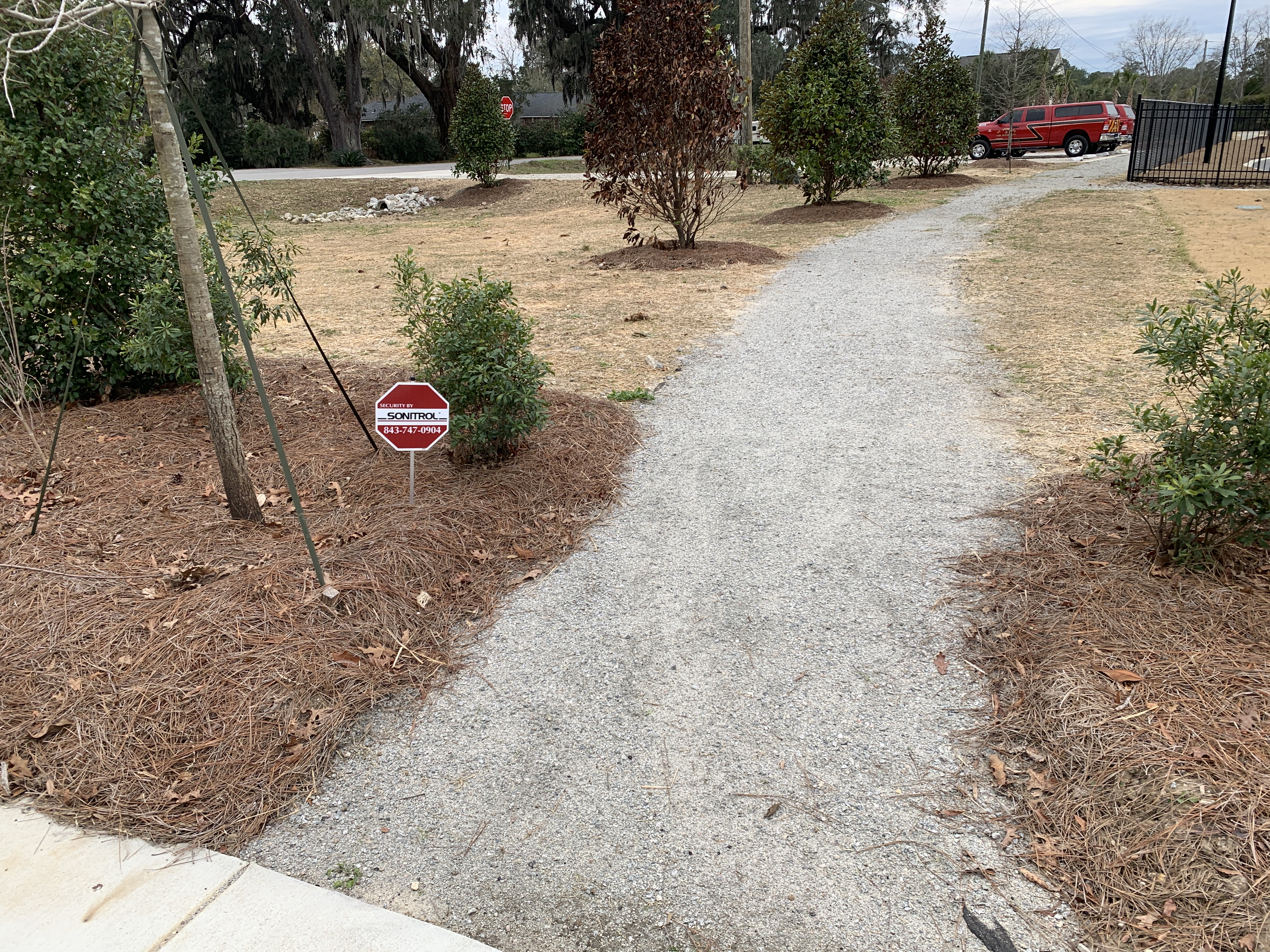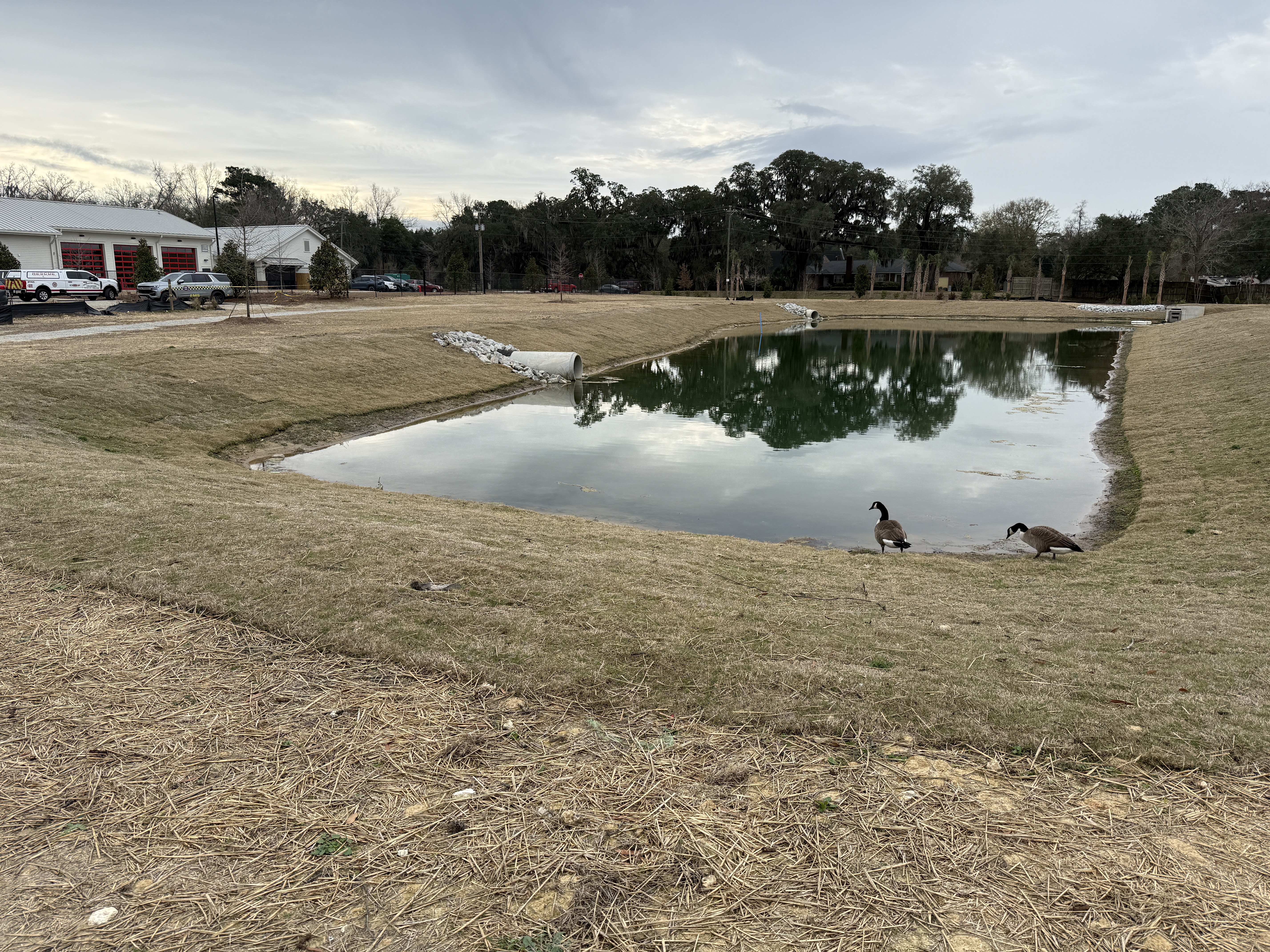 - Walking path around a stormwater pond